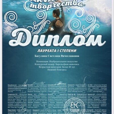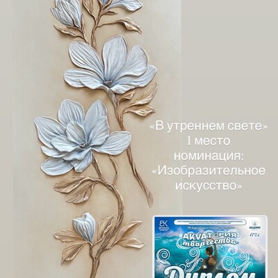 Жюри международного конкурса «Акватория творчества» высоко оценило моё творчество и присудило моей картине «В утреннем свете» первое место.